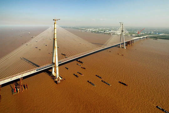 苏通大桥的建设是我国建桥史上工程规模最大、综合条件最复杂的特大型桥梁工程,大桥跨径为1088米,是当今世界跨径最大的斜拉桥。